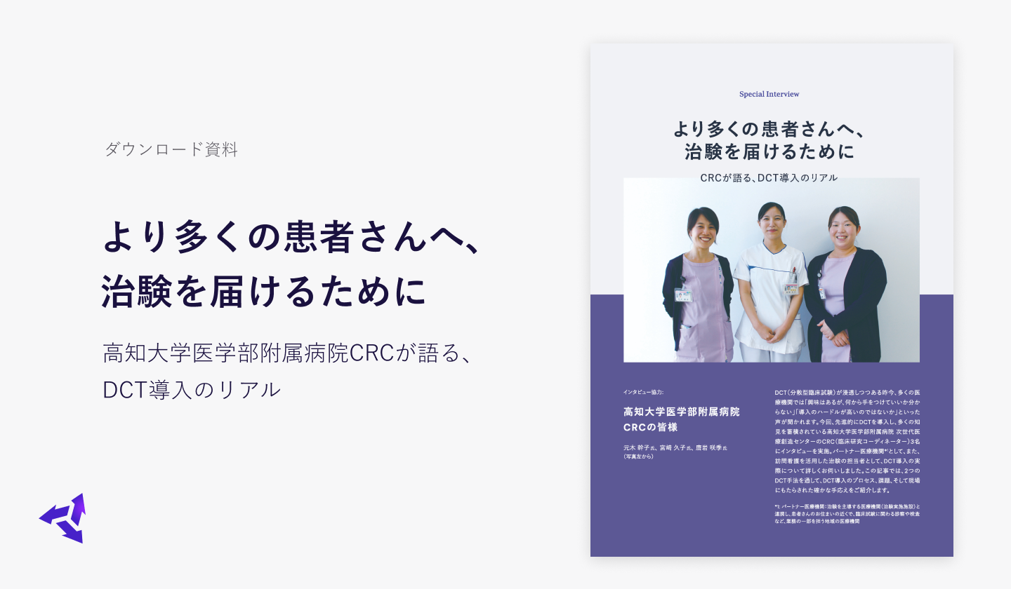 [インタビュー] より多くの患者さんへ、治験を届けるために~高知大学医学部附属病院CRCが語る、DCT導入のリアル~